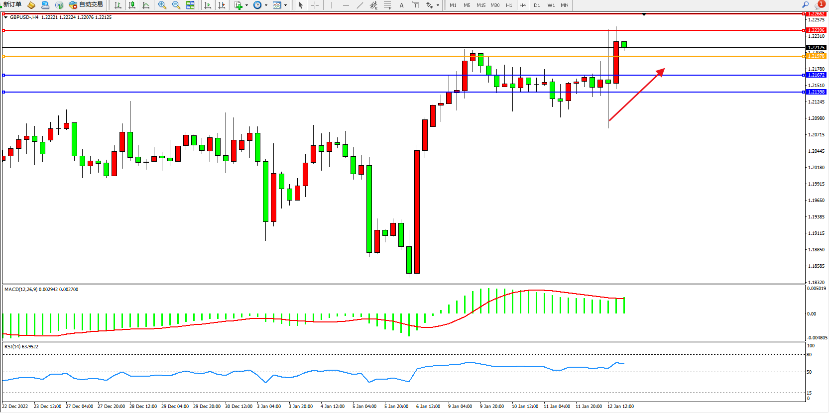 英镑美元GBPUSD ——4小时K线图显示:
