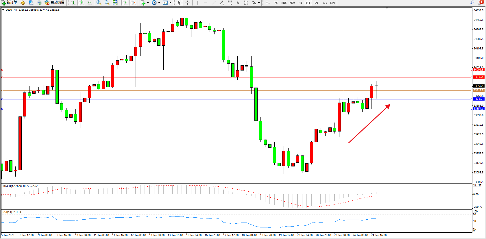 道琼斯指数1月24日(周二)收盘上涨104.40点,涨幅0.31%,报33733.96点;由于市场下调美联储本轮加息周期的利率峰值预期,并且注意力更多转向其他发达经济体的政策收紧,市场预计,美元将在2023年走软。