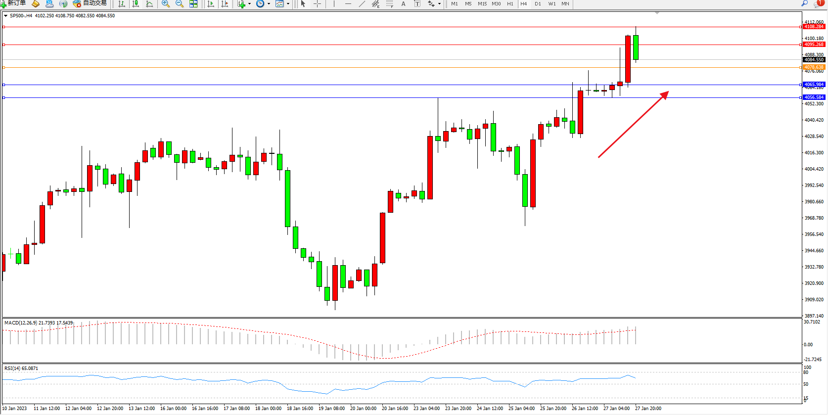 标普500指数1月27日(周五)收盘上涨9.22点,涨幅0.23%,报4069.65点;美国12月核心PCE物价指数年率录得4.4%,放缓至一年多来最慢的年度增速,同时消费者支出下降,确认了政策制定者将进一步放慢加息步伐的预期。美国12月PCE物价指数年率录得5%,仍远高于美联储2%的目标,但都是自2021年底以来最慢增速。