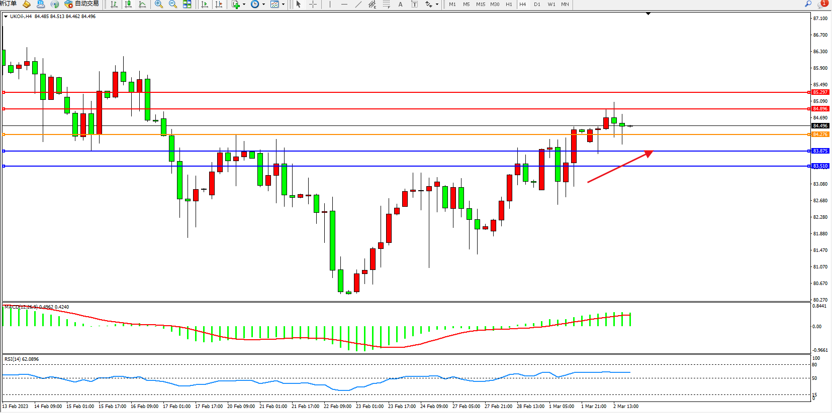 交易策略:84.276上方看涨,目标84.896、85.297