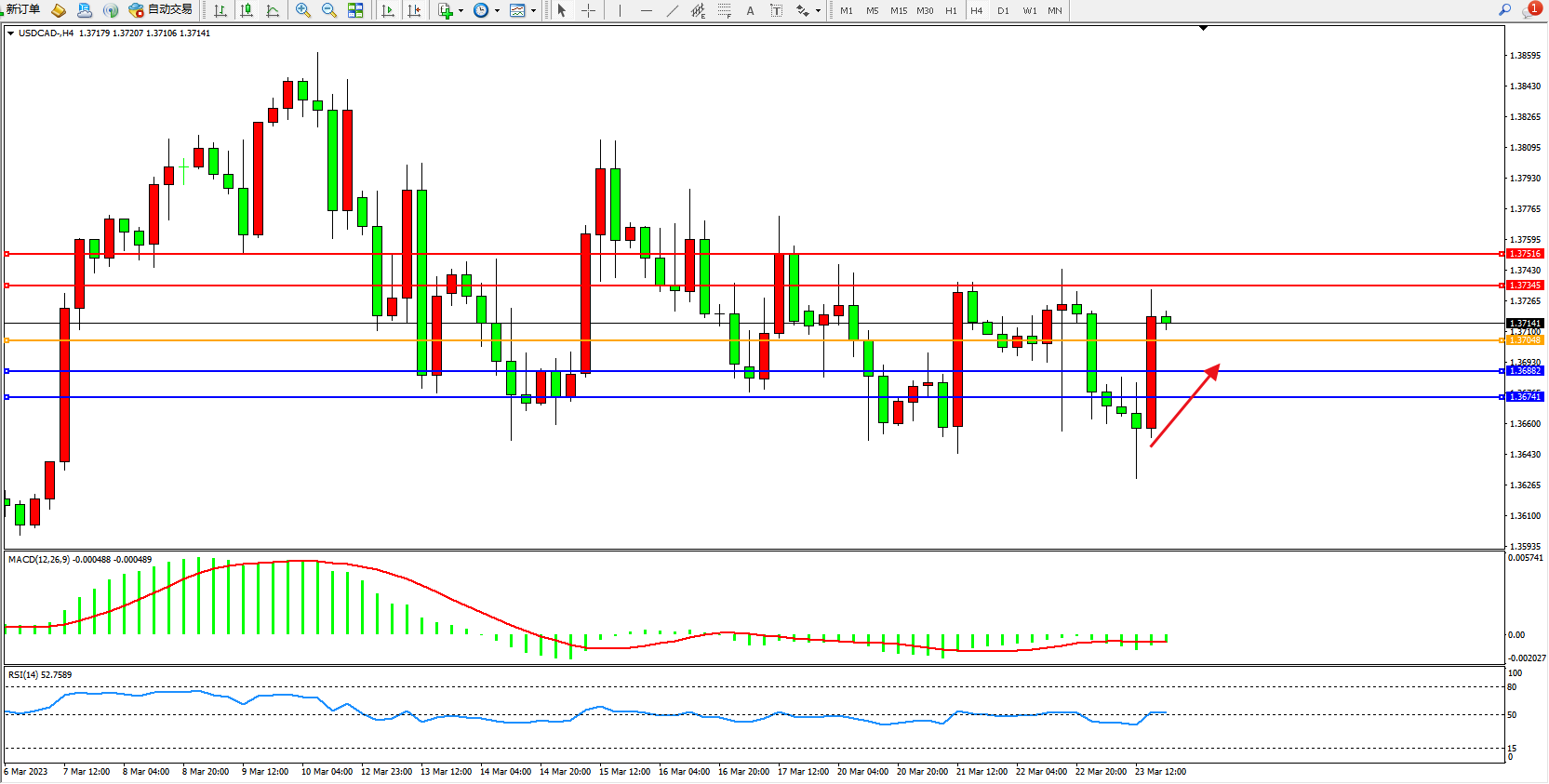 美元兑加元维持1.37141附近震荡,美联储鸽派加息,美元大幅走弱,给油价提供支撑,但美国财长耶伦周三对立法者表示,她没有考虑或讨论过未经国会批准向美国银行存款提供“全面保险”,市场对银行业担忧导致纽约股市显著下跌,也对油价产生拖累。