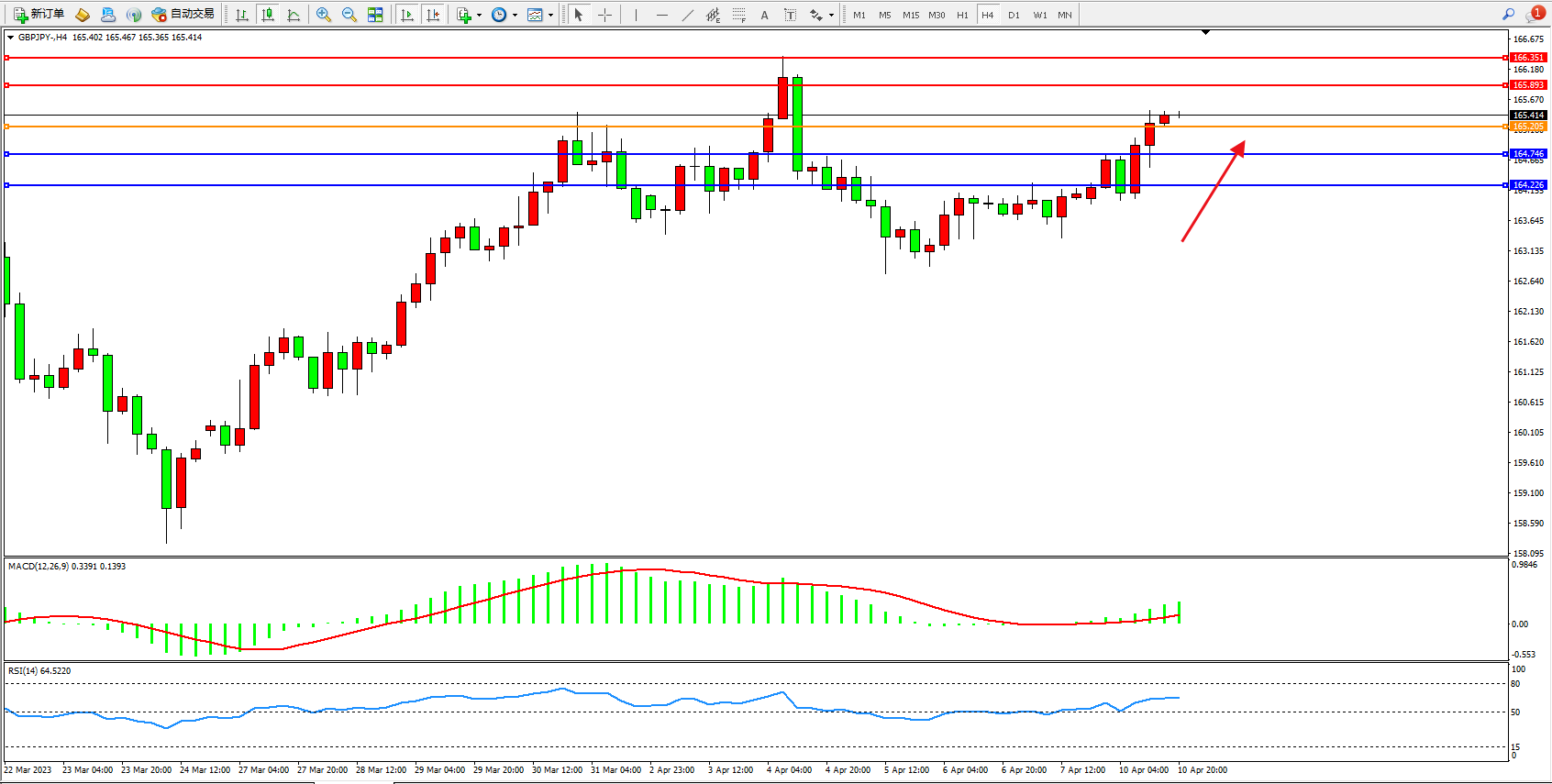 英镑兑日圆维持165.414附近震荡,英国经济今年的表现似乎将好于专业预测者的预期。这给到英国央行相应的空间继续调升利率以抑制创纪录的通胀率。