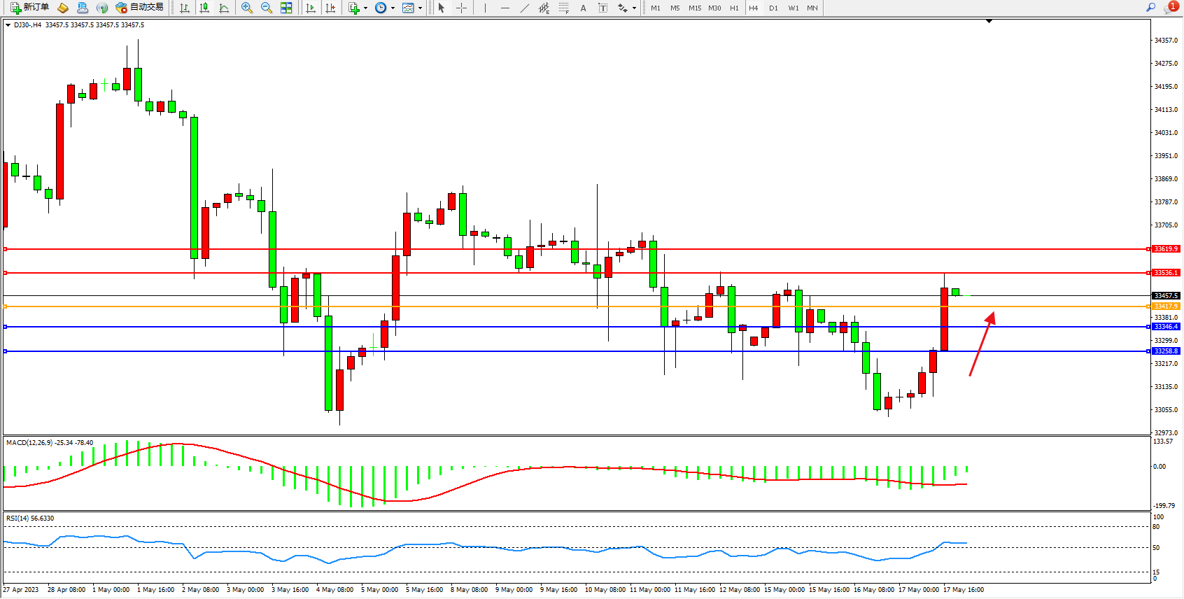 道琼斯指数5月17日(周三)收盘上涨409.09点,涨幅1.24%,报33421.23点;美联储官员的最新评论推迟了降息前景。目前预计美联储6月维持利率不变的可能性接近80%,9月降息可能性仅略超50%。
