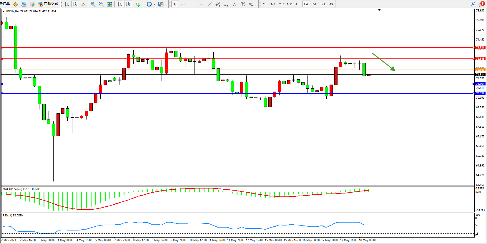 原油USOil——4小时K线图显示: