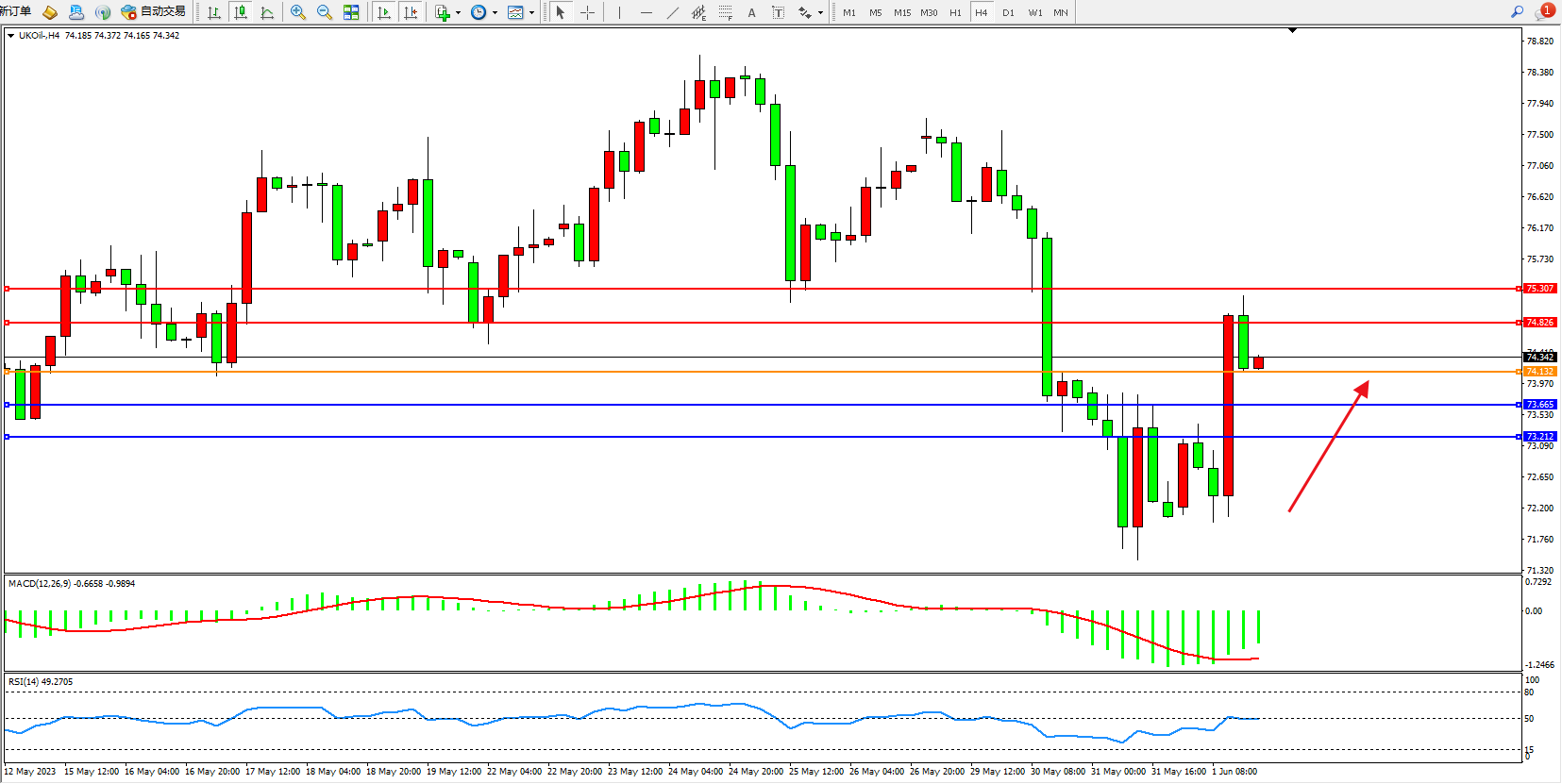 4小时图看:多头动力强势拉升上扬,短期看涨情绪依旧,市场整体处于多头趋势中,MACD指标处于空头区域震荡上移,RSI指标处于50均衡线附近弱势徘徊;