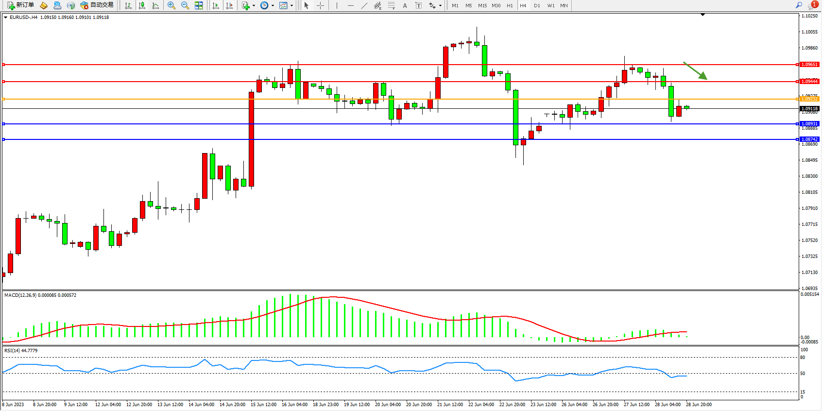 交易策略:1.09232下方看跌,目标1.08931  1.08742