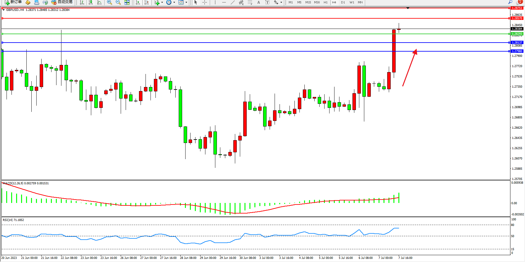 交易策略:1.28293上方看涨,目标1.28570 1.28751