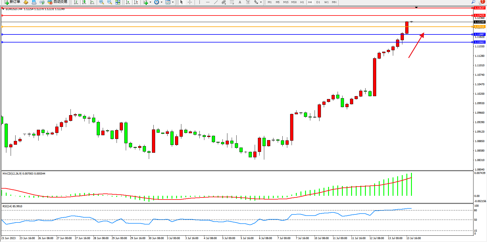 4小时图看:多头动力高位上移,市场看涨情绪笼罩,短期有继续向上移动态势,MACD指标处于多头区域高位上行,RSI指标处于多头区域80均衡线上側徘徊;