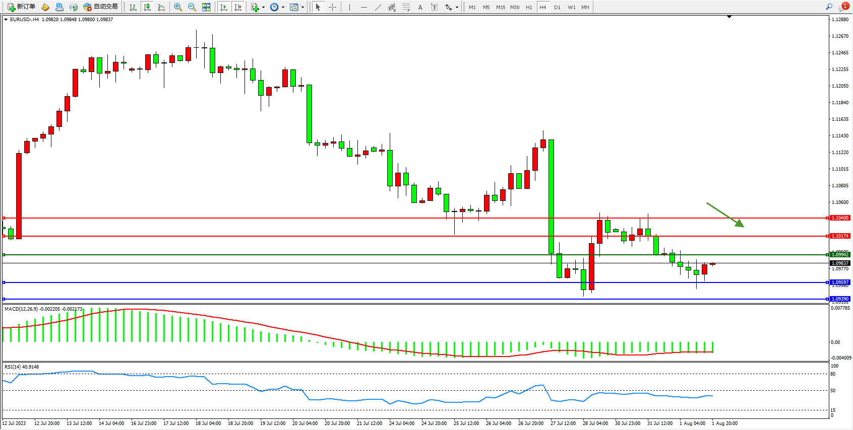 欧元兑美元维持1.09837附近震荡,由于需求下降,欧元区7月份制造业活动以自新冠疫情爆发以来最快的速度收缩。欧洲最大经济体德国经济相当疲弱,欧元区第二大和第三大经济体法国和意大利的经济自6月以来也出现明显恶化。