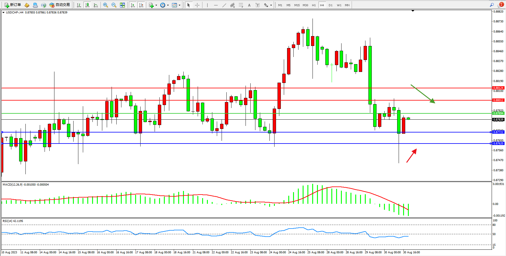 交易策略:0.87894下方看跌,目标0.87722  0.87620