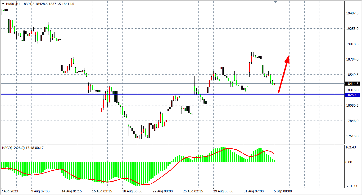 4小时图看,恒指再度回落跌至18500之下,MACD量能在零轴上缩量,支撑关注18250-18000附近,阻力关注18700-19000附近。