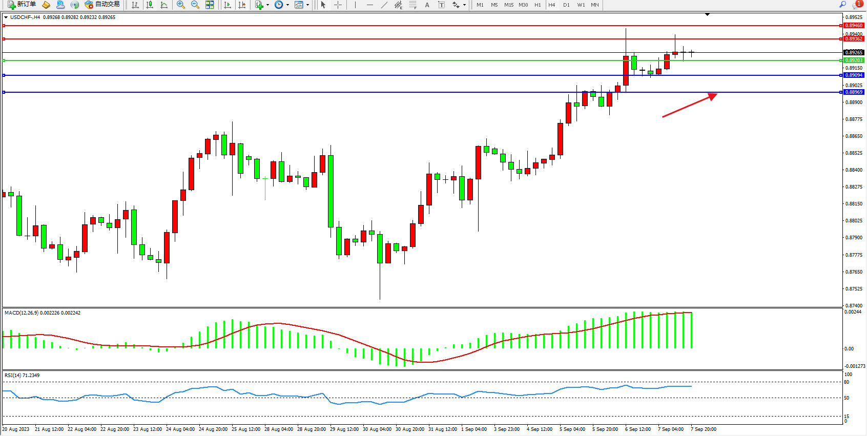 交易策略:0.89203上方看涨,目标0.89362 0.89460