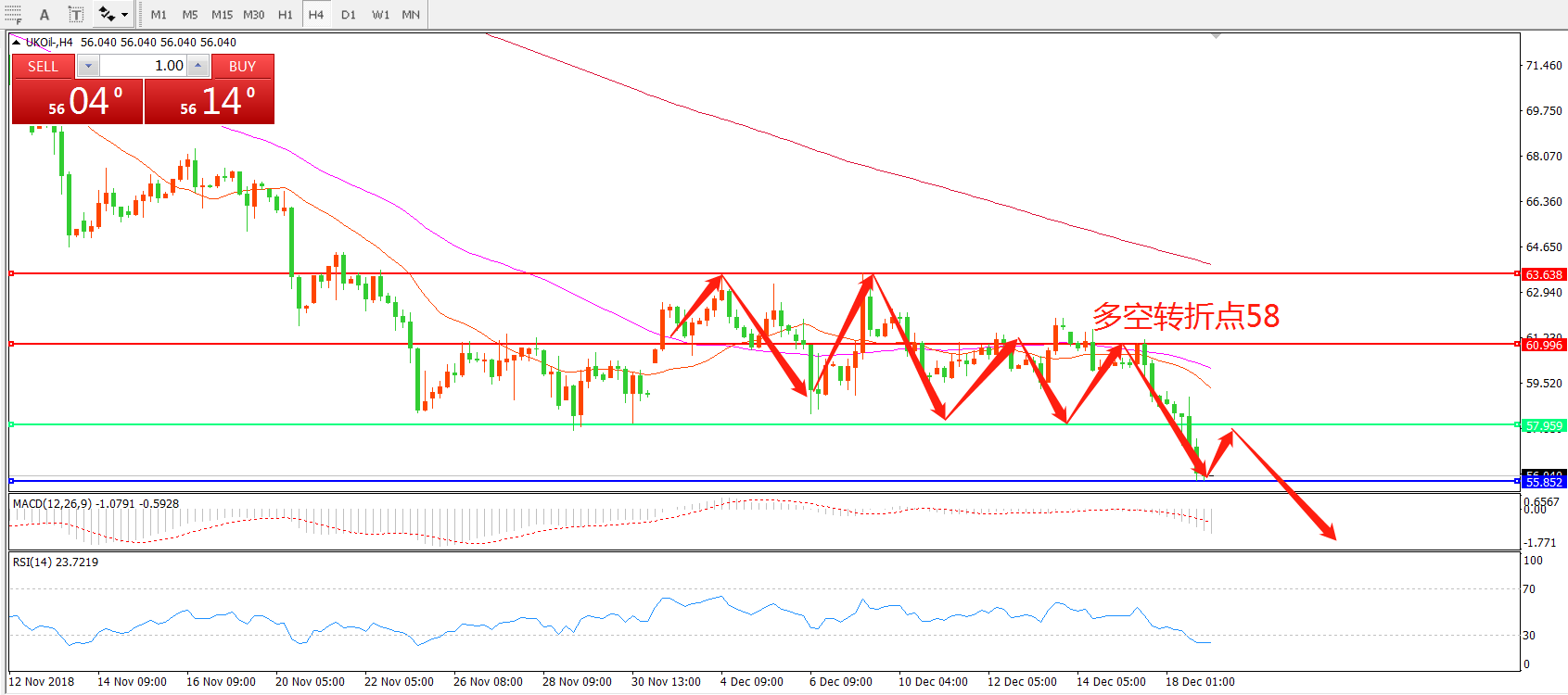 交易策略:在58.00之下看跌,目标55.00    53.00