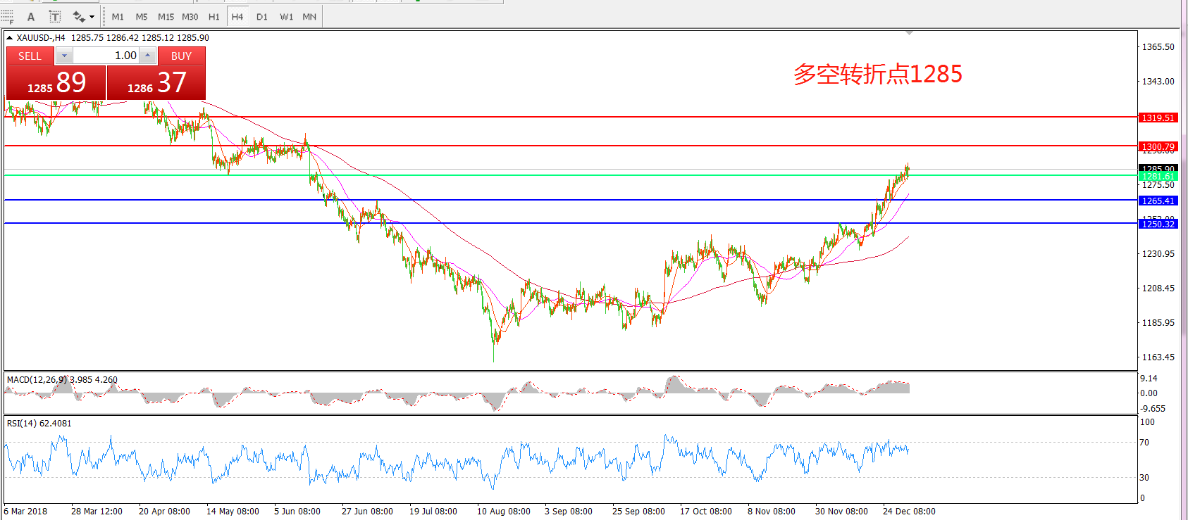 交易策略:在1285.00之上看涨,目标1300.00 1319.00