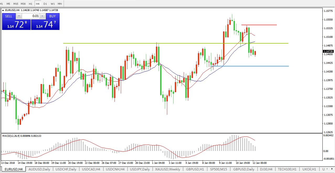 交易策略:在1.1495之下,看跌,目标价位为 1.1440 ,然后为1 .1400。