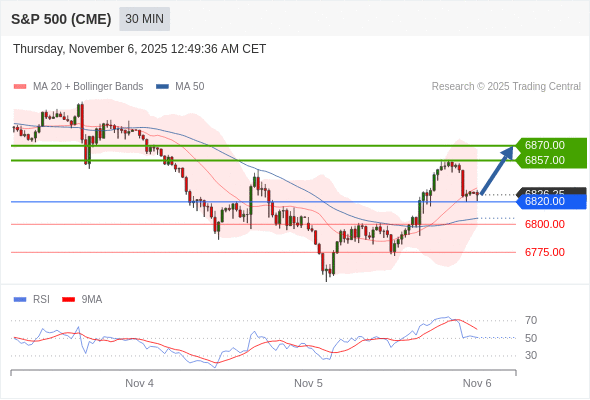 交易策略: 在 6820.00 之上,看涨,目标价位为 6857.00 ,然后为 6870.00 。