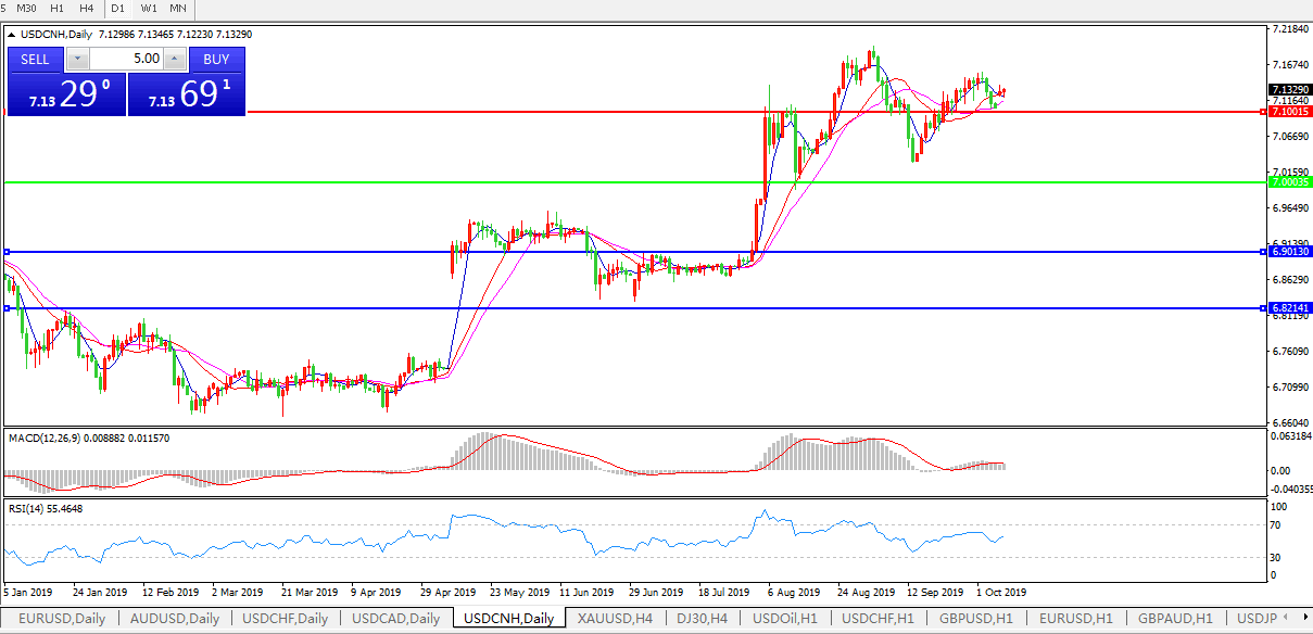 技术面简析:日图均线整体呈攻势但短期均线有回落迹象,汇价站稳7.10关口并伴随间歇性上攻,MACD运行于0轴上方但量能逐步萎缩,RSI小幅走升,预计短期汇价随贸易谈判有所反复但中期汇价大概率将下行,上方重点关注7.20-7.30区间的压制;中美贸易谈判再度开启,进展须持续关注。