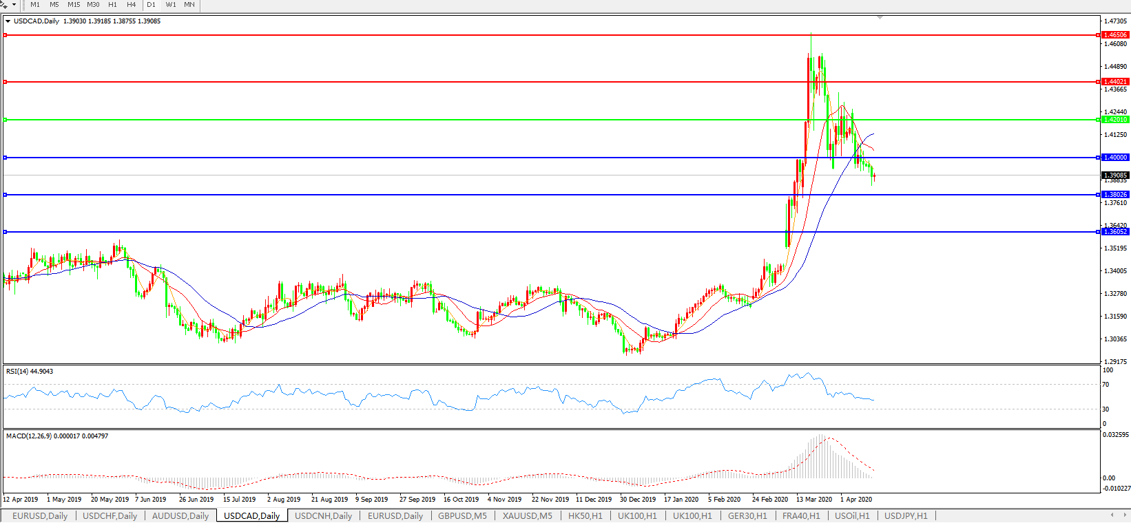 交易策略: 在1.4200之下,看跌,目标价位为1.4000、1.3800