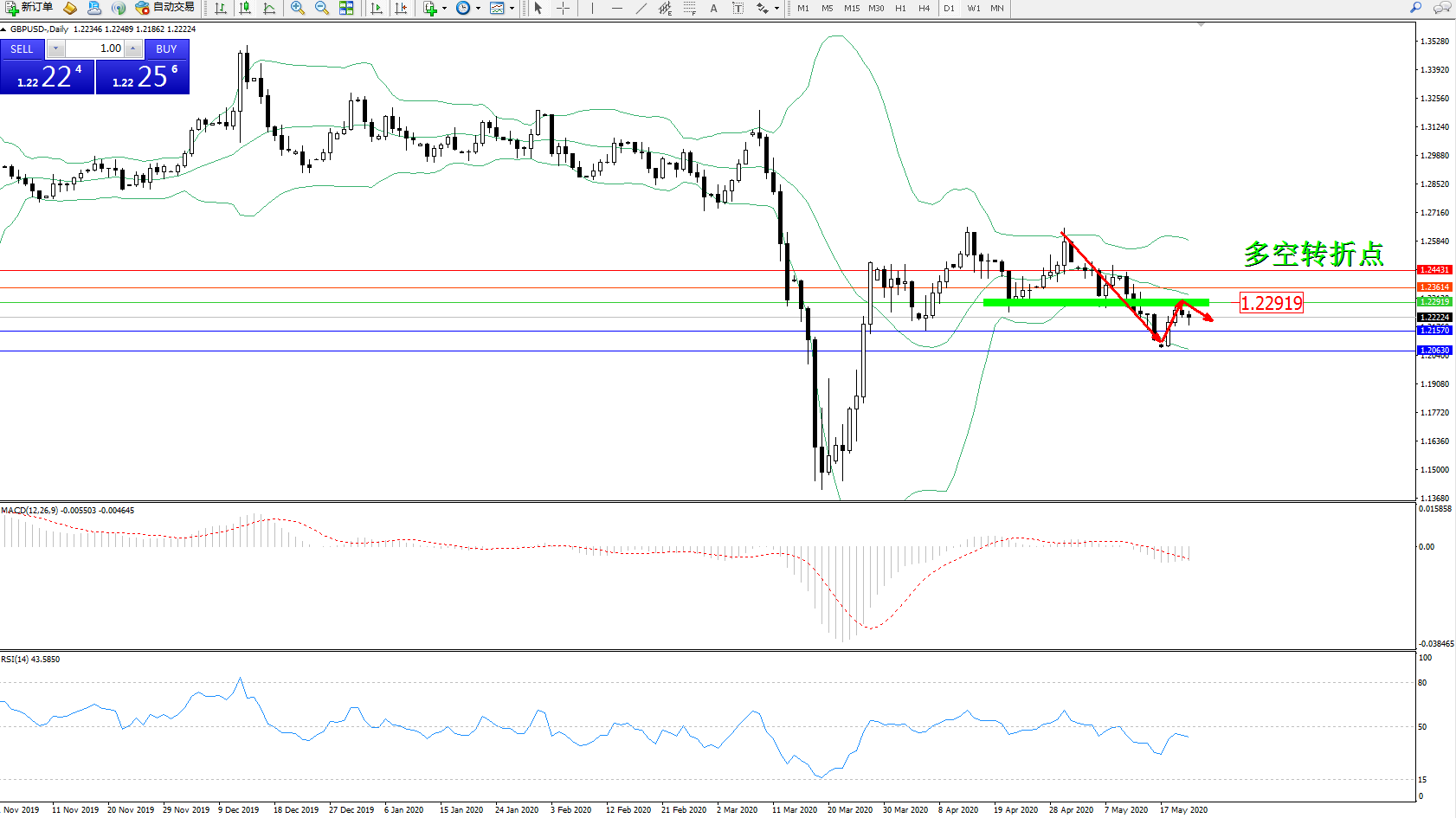交易策略:1.22919下方看跌,目标1.215701.20630