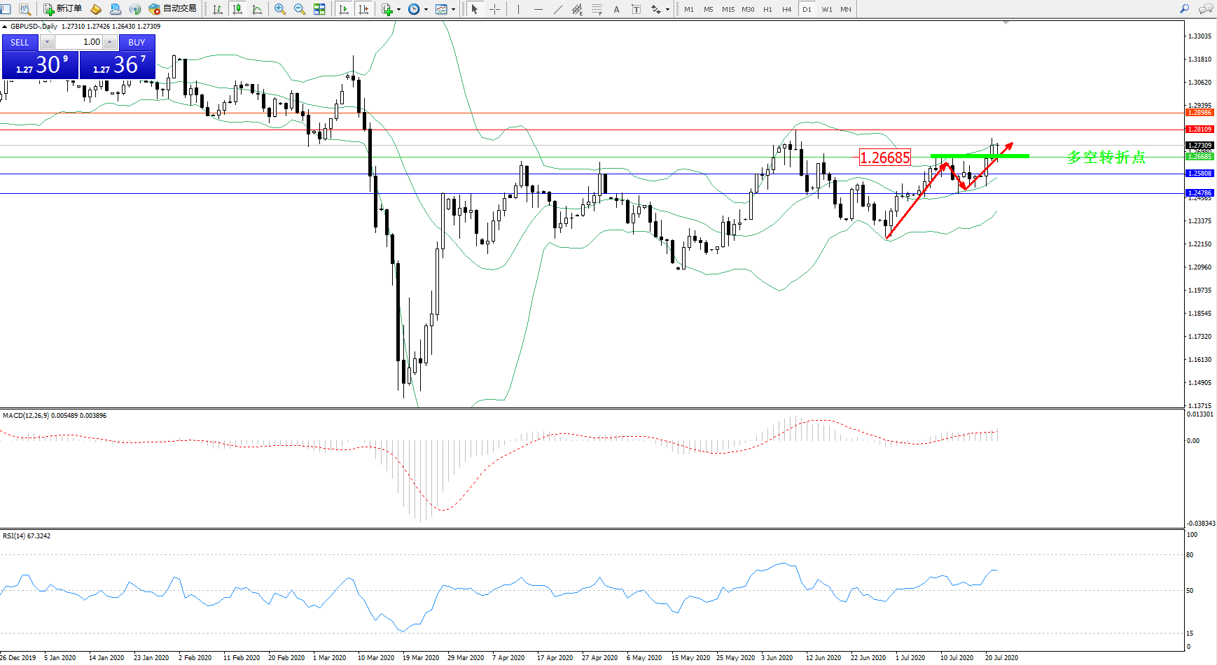交易策略:1.26685上方看涨,目标1.28109、1.28986
