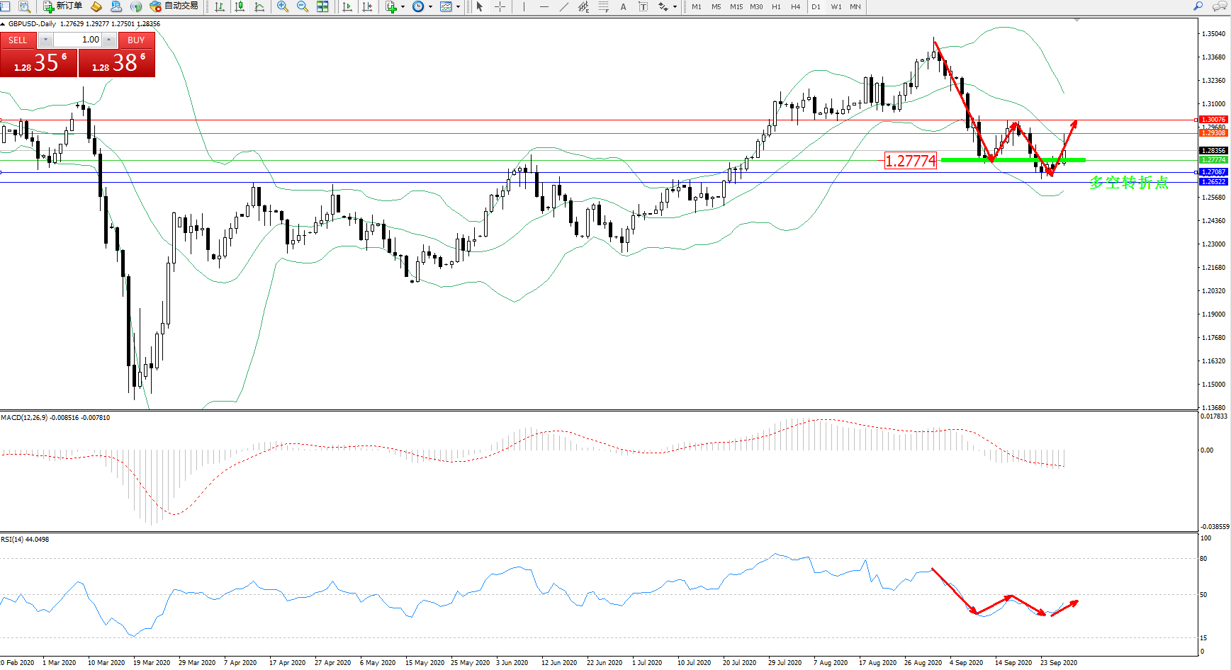 交易策略:1.27774上方看涨,目标1.29308、1.30076