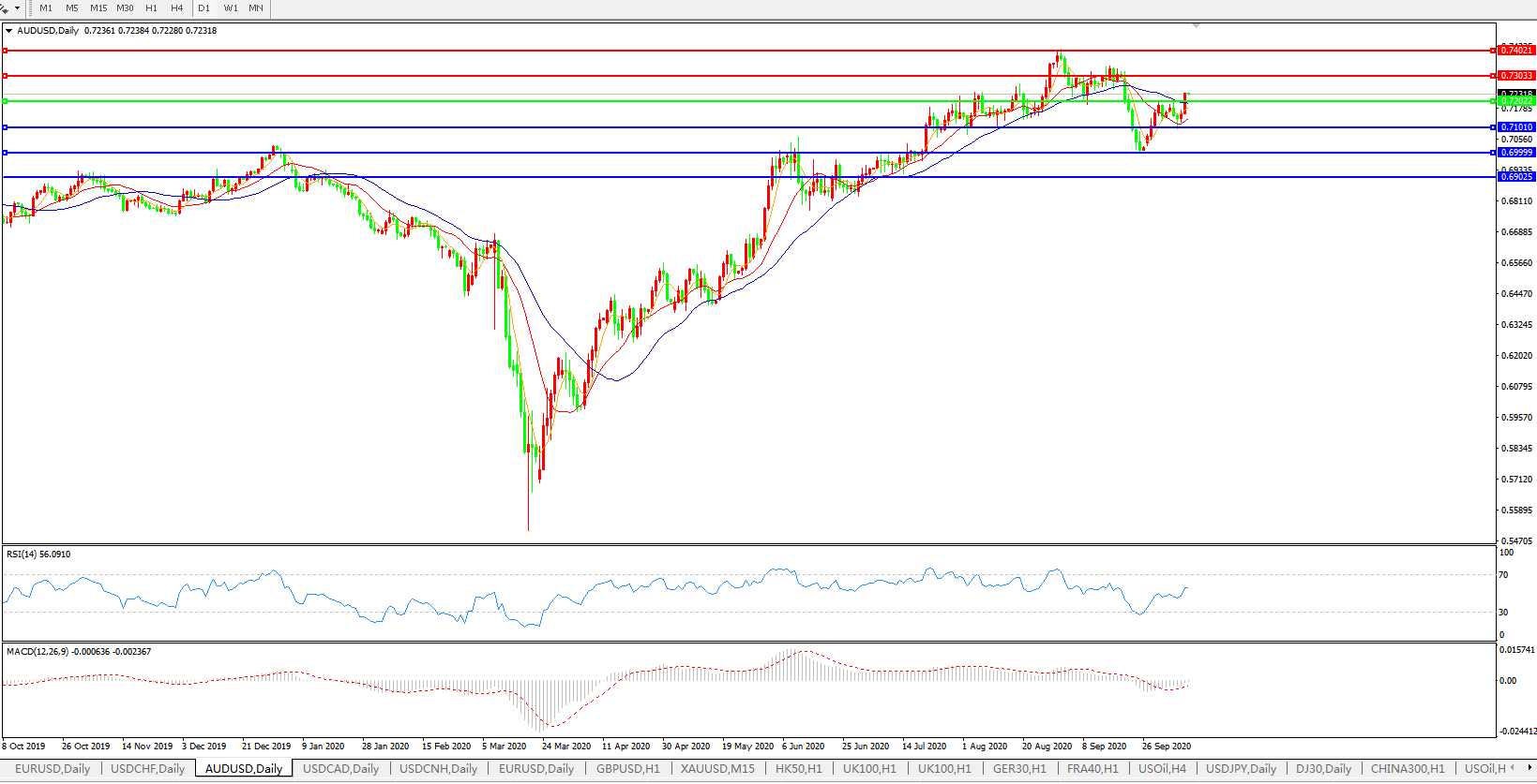 交易策略:0.7200上方看涨,目标0.7300、0.7400