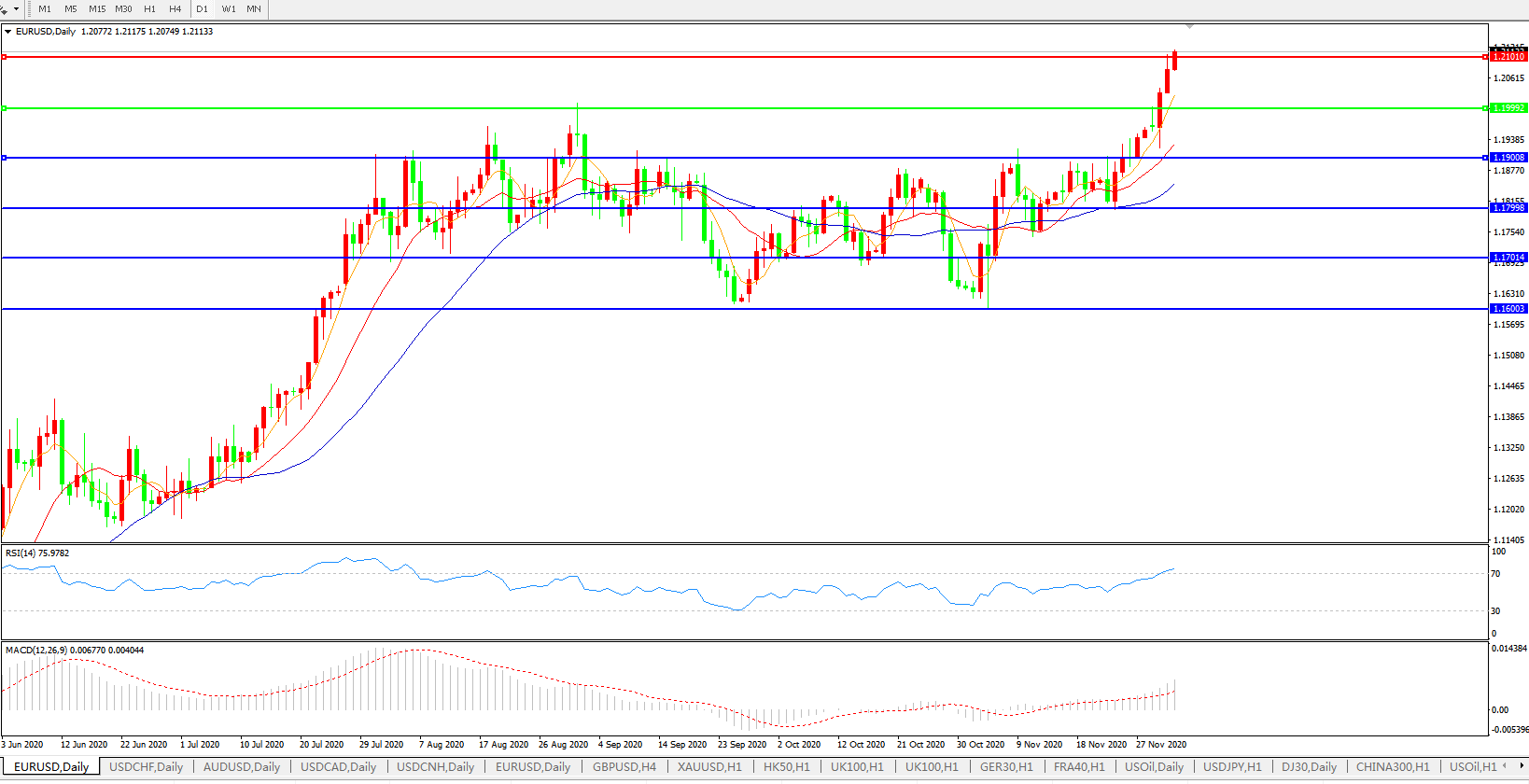 欧元兑美元EURUSD   日线图: