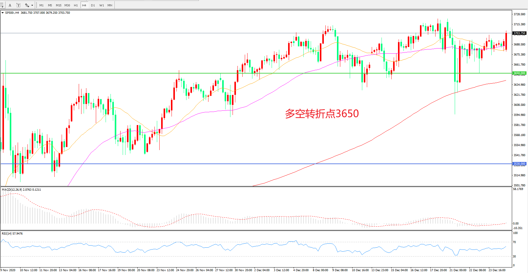 多空转折点:3650.00