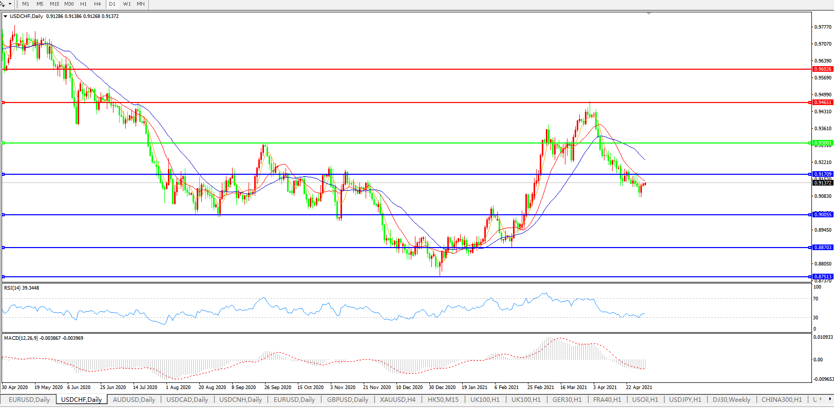 交易策略:0.9300下方看跌,目标0.9170、0.9000