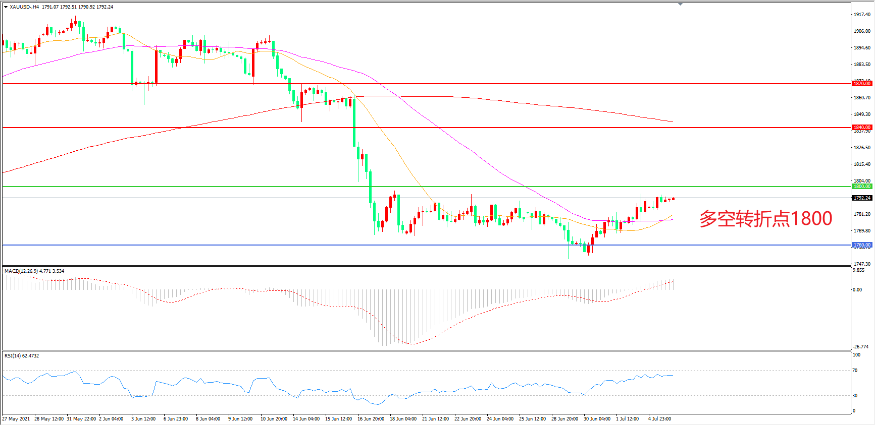 备选策略:在1800.00之上看涨,目标1840.00 1870.00