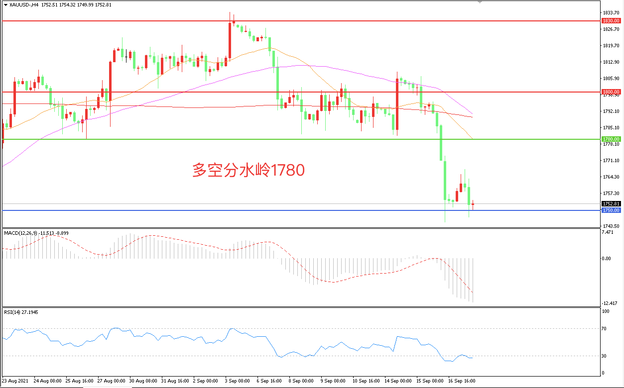 交易策略:在1780.00之下看跌,目标1750.00 1720.00