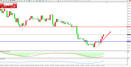 现货黄金近期跌破1700美元是一种夸张的走势,金价重回1750美元上方更接近其公允价值。在美联储紧缩周期接近尾声的情况下。市场目前更关注经济衰退的威胁,而不是美联储加息。预计增长将继续放缓。美国经济在好转之前还会恶化很多,这对黄金有利。
