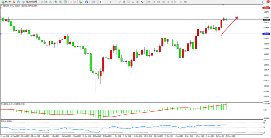 多头动力持续震荡上扬,短期看涨情绪态势良好,市场整体处于拉升态势,上方压制关注1.23627附近,低位支撑关注1.17384附近,MACD指标处于多头区域高位缓慢上移,RSI指标处于多头区域整理,如图: