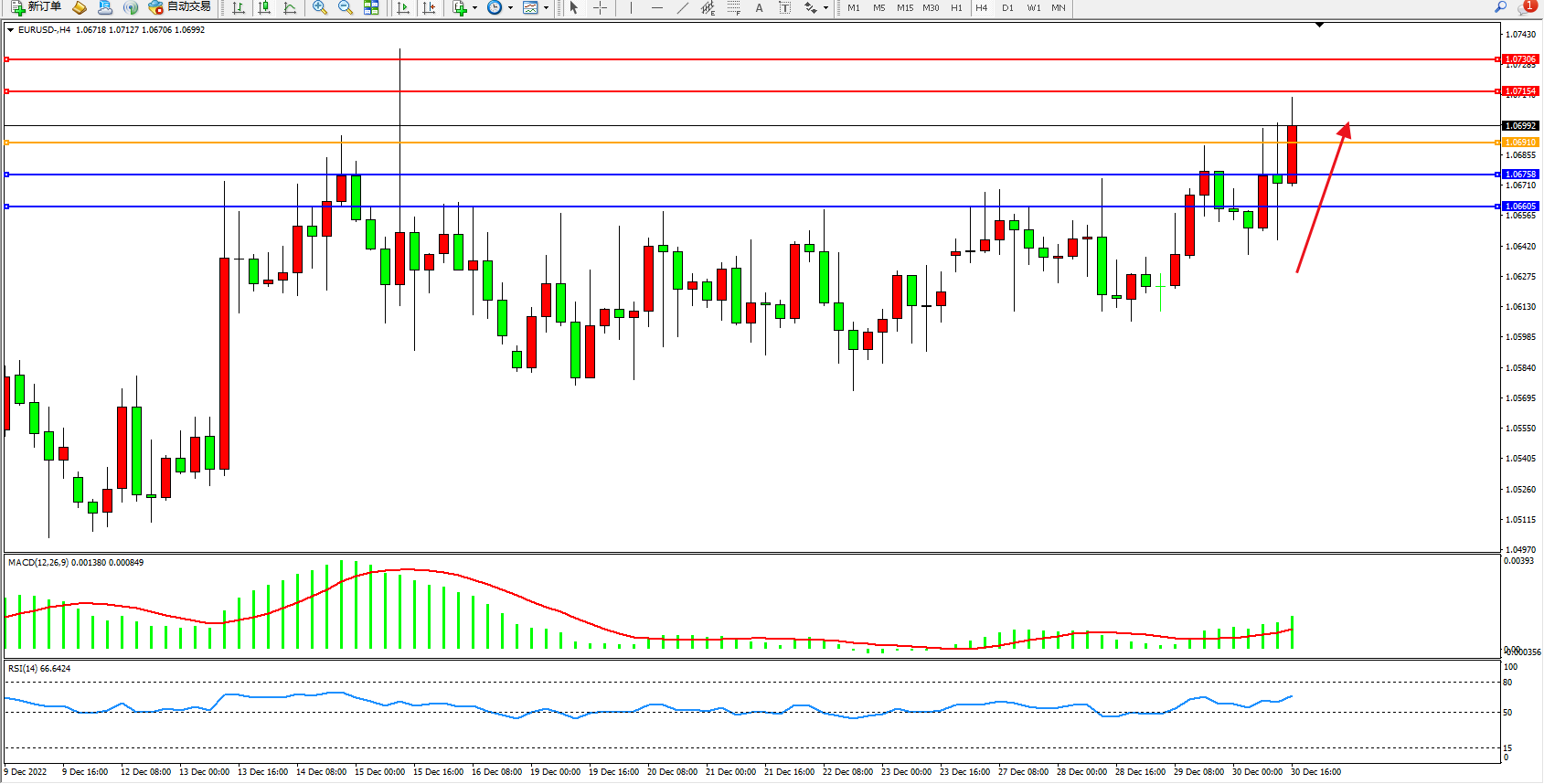 交易策略:1.06910上方看涨,目标1.07154、1.07306