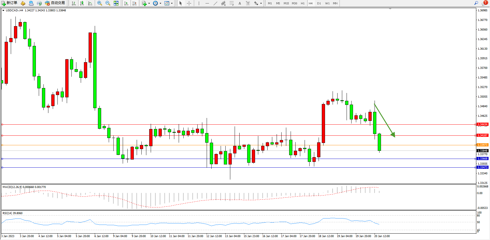 美元兑加元维持1.33848附近震荡,加拿大11月零售销售月率 -0.1%,预期-0.50%,前值1.40%。加拿大零售销售数据将使加拿大央行下周的决策变得艰难,因为有明显的迹象表明,经济正在放缓,房地产正在下行。市场预期下周加息25个基点的几率为65%,维持不变的几率为35%。