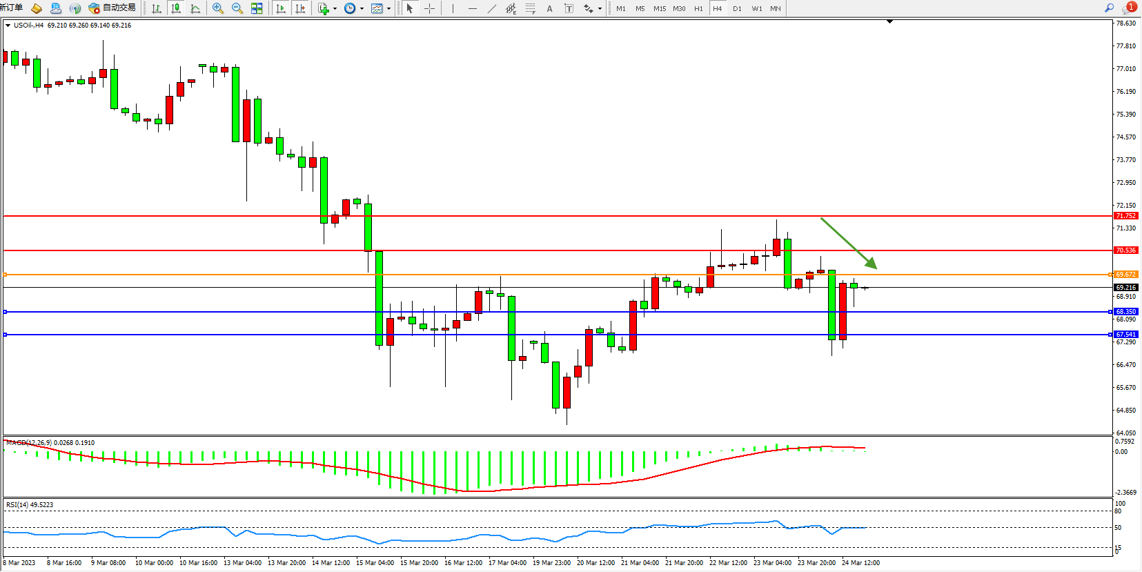 原油USOil——4小时K线图显示: