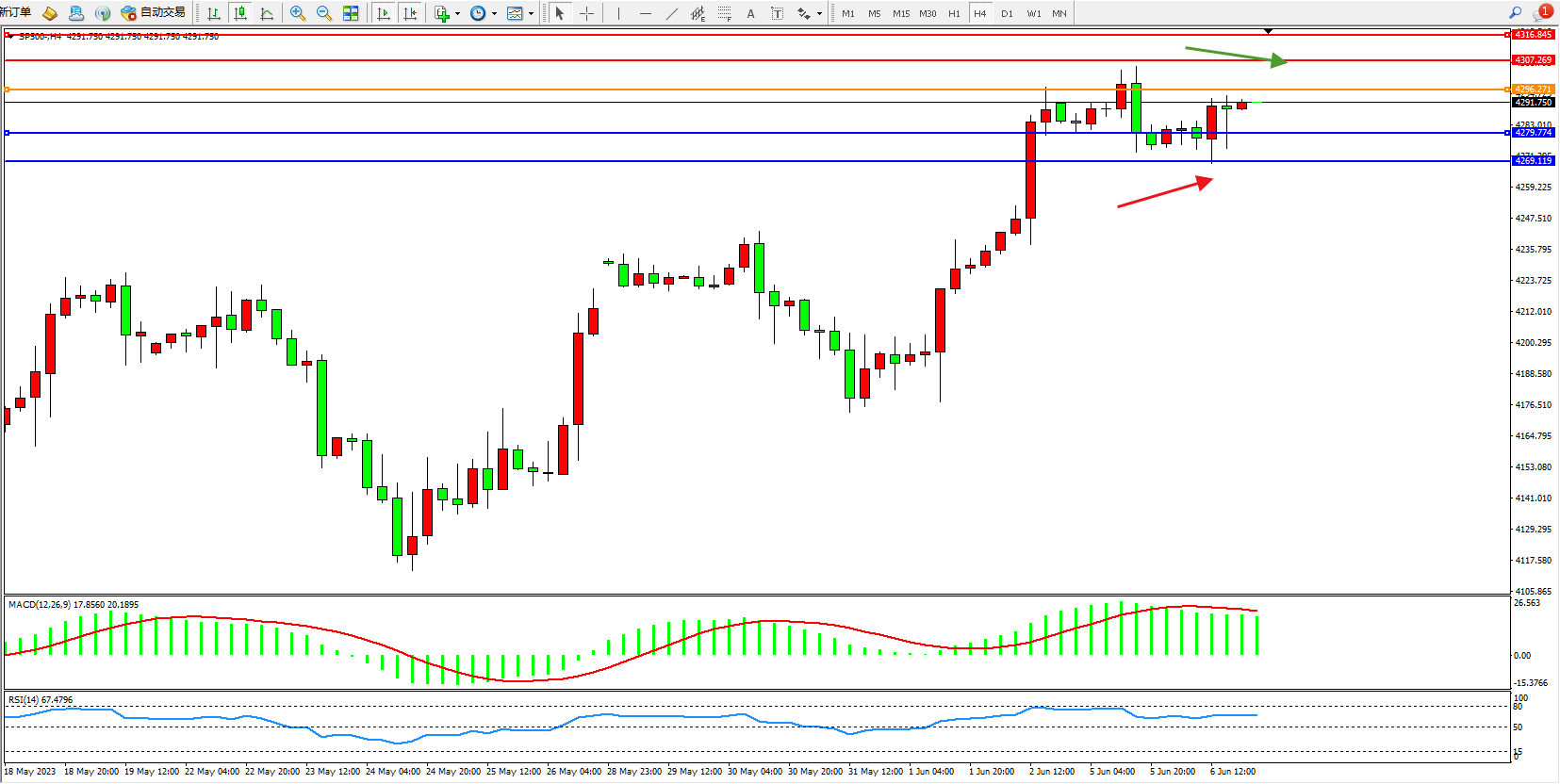 标普500指数6月6日(周二)收盘上涨9.14点,涨幅0.21%,报4282.93点;由于美联储积极的紧缩货币政策和美国地区银行使用的信贷发放程序中增加了更多的筛选措施,美国经济活动广泛收缩。