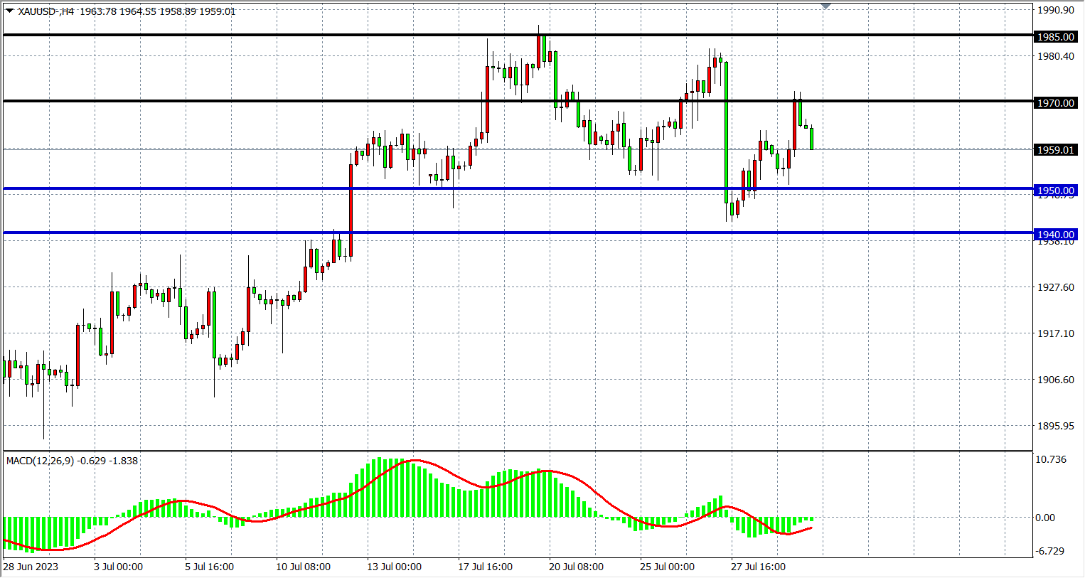 周一(7月31日)现货黄金先跌后涨,最终收涨0.3%,创下4个月来最佳月度表现