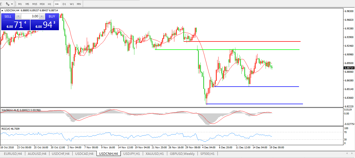 美元兑人民币USDCNH4小时图: